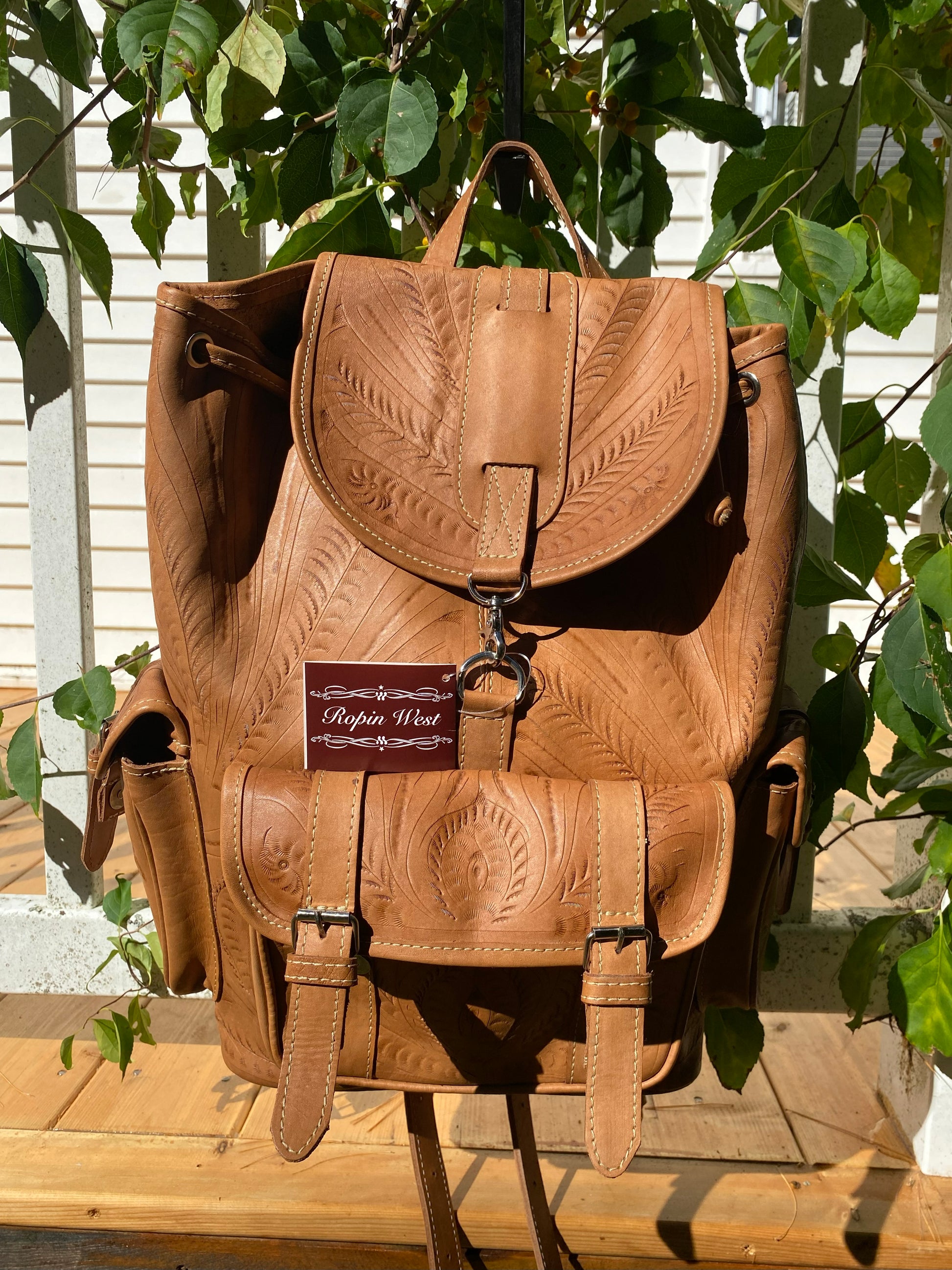 Ropin West Hand-Tooled Full-Grain Leather Travel Backpack – Style 784
